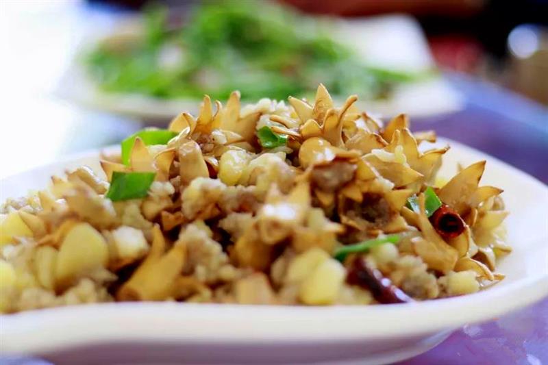 先说说闻名遐迩的白族三道茶。![]() “一苦,二甜,三回味”,头道茶,经过土陶罐中文火的熏烤,香中带苦,故名苦茶。二道茶,配制时加入了核桃仁片、烤乳扇和红糖,味甜带乳香,故名甜茶。三道茶中放入了花椒、姜片、桂皮,集麻辣、香甜、茶香于一体,故名回味茶。 大理白族三道茶,品的是一种心情,也是一种人生意味。 一城一味,每个地方的建筑、风景可能会在记忆里慢慢磨灭,可停留在舌尖的味道,总能清晰唤起独属于某个城市的印记和怀念……穿越大街小巷,寻找最具特色的大理美食! 乳扇 ![]() 云南十八怪之“牛奶做成扇子卖”,指的就是大理白族的乳扇。乳扇是以牛乳为食材,在酸水里使其凝固,然后拉抻如扇子形状的薄片,能煎能炸,能烩能炒,在大理可以说是最有名和最霸道的小吃。 ![]() ![]() 乳扇的经典吃法有两种,一种是炭火烤软,抹上玫瑰酱;一种是油煎至金黄,直接吃。刚刚制作好的乳扇带着热气,涂抹上大理招牌玫瑰酱,一口咬下去,奶香萦在舌尖,满满的甜蜜。不过也正是乳扇厚重的奶味,并不是所有人都能适应哟! 推荐地:大理古城随街小摊&复兴路与人民路交叉口杨记乳扇 人均:5元 饵块 ![]() ![]() 饵块,也是云南十八怪之一,由大米揉制而成,香软滑糯。大理烧饵块在街头巷尾都可以看到,经过炭火炙烤后,加上肉酱、蔬菜、花生面,再夹根油条或火腿肠,口味可咸可甜,好吃、管饱,大理人民一般会把它当做早餐。认准学生扎堆的小摊,味道一定没错。 推荐地:大理古城人民路、复兴路比较集中 人均:5元 凉虾 ![]() 陪伴大理人从小“吃”到大的一道~呃,或许叫做甜品更贴切些。其名字和制作方法都十分有趣而传统:把米磨成粉、熬成浆、过筛,就成为一条条的小虾状,故而得名“凉虾”。纯天然制作,健康、解暑,还是吃火锅时的解辣好搭档哦。 推荐地:大理古城复兴路小摊 人均:5元 凉鸡米线 ![]() 凉鸡米线是大理的一道特色小吃,尤其是夏热天的标配。因为它酸甜适度的中和,让众口难调的四方游客都能轻松接纳。米线入碗,放入各种辅料、卤鸡肉,浇上自制卤汁、油泼辣子、花椒油、熟核桃,一看就让人垂涎欲滴,吃起来味足、劲道。 推荐地:大理古城人民路再回首 人均:8元 𤆵肉饵丝 ![]() ![]() 饵丝是云南人喜爱吃的一种米制品,它色泽洁白、细嫩软糯而有筋骨,经沸水烫后,不糊不烂。大理的饵丝除了出众质地,更大的亮点是那独一无二的配料“𤆵肉”。饵丝烫熟后,浇上骨汤,再盖上一勺𤆵肉,热气腾腾,香味扑鼻。元气满满的早晨就从甩一碗𤆵肉饵丝开始! 推荐地:巍山𤆵肉饵丝店 人均:8元 喜洲粑粑 ![]() ![]() 粑粑是云南的方言,可以用来称各种饼。喜洲粑粑又名破酥,是一种色、香、味俱佳的麦面烤饼,外来的人们亲切地称它为“大理披萨”。尤以喜洲古镇制作的最为地道。刚出锅时金黄的色泽和面香十分诱人,一口咬下去,外层酥得可以掉渣下来,里面又是软软的。有香甜玫瑰口味和椒盐鲜肉口味,满足不同的喜好。 推荐地:大理喜洲古镇四方街 人均:10元 油粉 ![]() ![]() 也称锅巴油粉、豆粉,是大理地区非常有名的地方小吃,用豌豆或蚕豆粉做成面糊直接凝固而成,可谓纯天然绿色食品。吃起来面糊部分是柔软的,锅巴部分绵韧可口。凉拌撒上酱油、醋、葱、芝麻油、白萝卜条、花生粉等,亦或油炸,撒上点辣椒面,都好吃。 推荐地:大理市五里桥乡观音塘 人均:8元 生皮 ![]() 生皮是大理的传统待客名菜,吃生皮的习俗相传始于南诏时期,千百年来一直是当地白族群众最喜爱的民间菜肴。所谓的生皮,就是在杀猪的时候,用稻草火烧去毛,故有“白族火烧猪”的美誉,口感鲜嫩,且营养丰富。 ![]() 生皮选材与制作都特别讲究,选取猪后腿肉和里脊、腰脊作为主料,用稻草或麦秸烧火将猪皮烤至表层发黄,然后才用水洗净,拌上佐料生吃。最地道的生皮口感细腻而没有腥味,辣中生香。 ![]() 除了肉质好坏,生皮好不好吃,蘸水也是关键因素。蘸水的调配讲究酸甜平衡,炖梅、陈醋、酱油、白糖、花椒面、辣椒面、蒜末、生姜……缺一样都不行,蘸水的口味,决定了生皮受欢迎的程度。许多游客吃第一次后就欲罢不能,也有游客始终“望而却筷”。你,不妨试一试。 推荐地:大理市五里桥乡观音塘 人均:30元 酸辣鱼 ![]() ![]() 大理人民由于独特的地理位置和气候特点形成了独特的口味,喜食酸和辣。加之洱海里盛产鱼,白族人民经过多次的改良,大理酸辣鱼就诞生了。酸辣鱼,吃的是一个酸、辣、鲜、香,煮的时候还会放入土豆和豆腐作为辅料,满满的一盘“色诱”。鱼肉细腻鲜嫩,鱼汤酸香爽辣,用来泡饭,简直三碗不过瘾。 推荐地:大理白族农家餐厅 人均:65元 海菜 ![]() “大理海子无根草,不飘不落不生根”。海菜产于大理洱海,属绿藻类海生植物,茎长四五尺,茎须开花。去掉花苞后,茎可做食,入口鲜香滑嫩,带点清脆口感。在大理的餐馆里常和芋头一起做汤,白、绿相间,浓稠适宜,滋味清爽。 推荐地:大理白族农家餐厅 人均:22元 花 ![]() ![]() “花枝不断四时春”的大理,用花入食,不仅是一种独特味道,更是属于大理的专属情调……自然的花香,配上新鲜的食材,搭配出来的,都是一道道诱人的吃食。玫瑰花做酱、烤制鲜花饼;杜鹃花和豆米熬成汤;石榴花与火腿搭配……可有各种丰富搭配,味道更是一绝。 推荐地:大理白族农家餐厅 人均:32元 雕梅 ![]() “小小青梅上指尖,巧